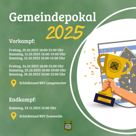 Die Vorkämpfe für den Gemeindepokal finden an folgenden Terminen bei uns im Schießstand statt: